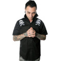 Harlock Skull X Bones western shirt, embroidered skull n cross bones front and back image, cotton poly shirt with black snap buttons.