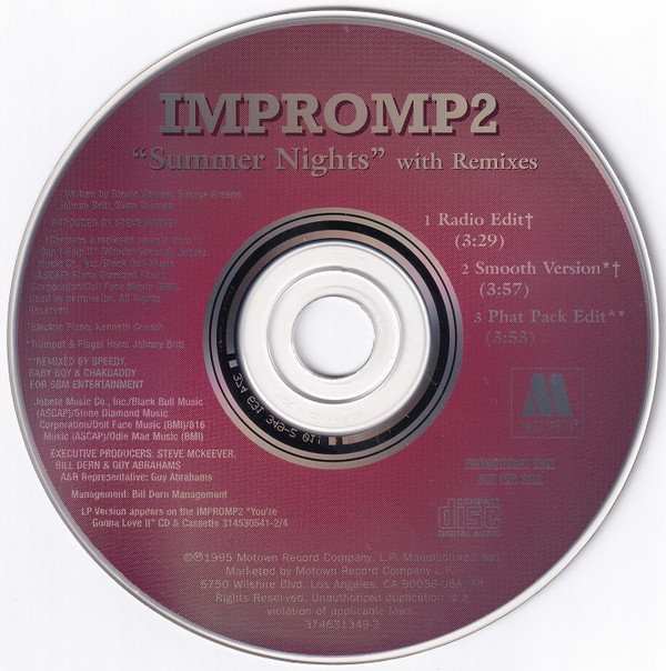 Tracklist: 1 Summer Nights (Radio Edit) | 2 Summer Nights (Smooth Version) | 3 Summer Nights (Phat Pack Edit)