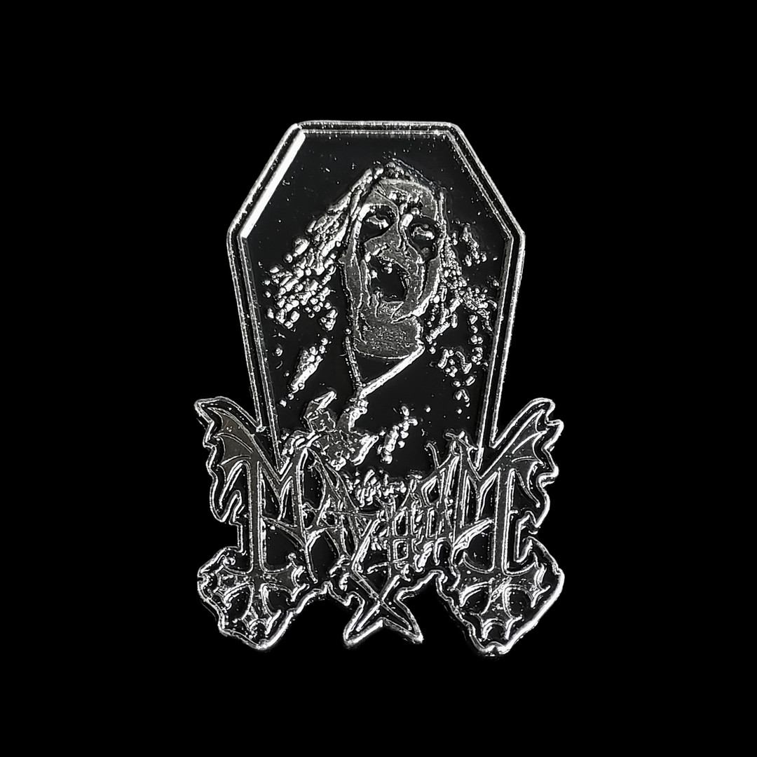 - Mayhem - Coffin 2.2x1.5" Metal Badge Pin