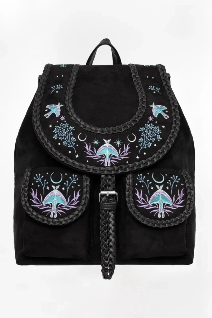 Do you feel drawn to the mysteries of the moonlit forest? The MOONGLOW BACKPACK captures that magic with beautifully embroidered Luna moths and intricate floral designs – like luminous fairies dancing among enchanted plants.
