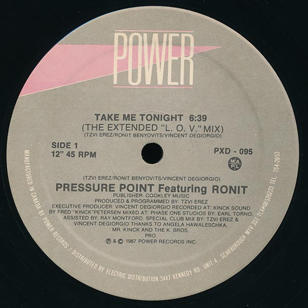 Tracklist: A Take Me Tonight (The Extended "L.O.V." Mix) | B1 Take Me Tonight (The Novox Mix - Instrumental) | B2 Take Me Tonight (Edit)