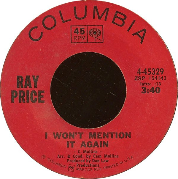Ray Price - I Won´T Mention It Again * Used 7" Vinyl