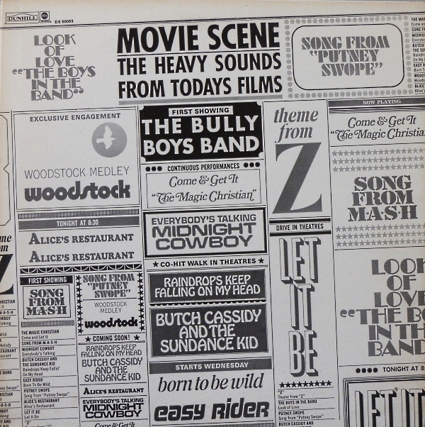 Tracklist: A1 Song From M-A-S-H | A2 Born To Be Wild | A3 Raindrops Keep Fallin' On My Head | A4 Alices Restaurant | A5 The Look Of Love | A6 Everybody's Talkin' | B1 Let It Be | B2 Face Off (From "Putney Swope") | B3 Come And Get It | B4 "Z" | Woodstock Medley